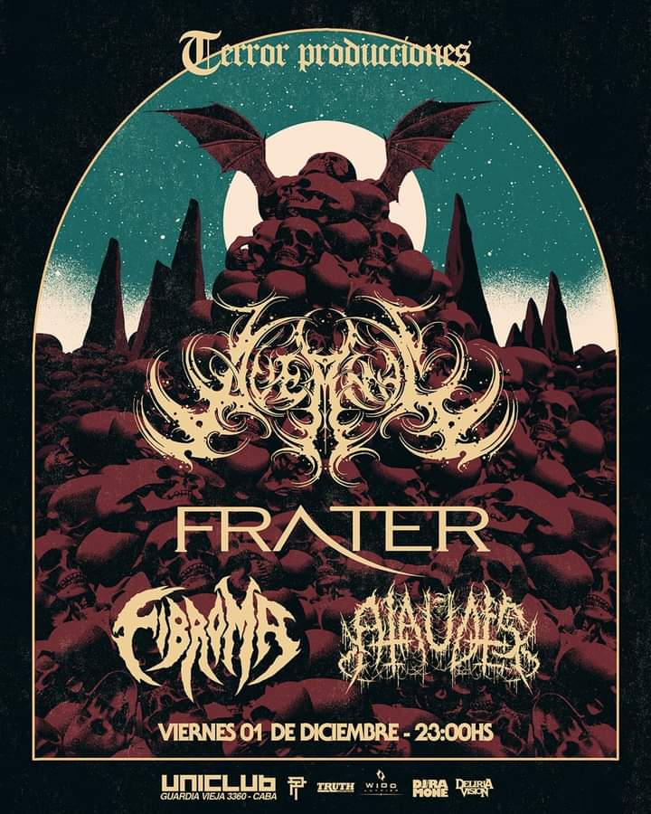 Terror Producciones cerrará el año con un gran festival y las bandas participantes serán: Avernal, Frater, Fibroma y Ataúdes, esto sucederá el próximo 1 de diciembre de 2023 en Uniclub, Guardia Vieja 3360 C.A.B.A. a partir de las 23:00 hs.