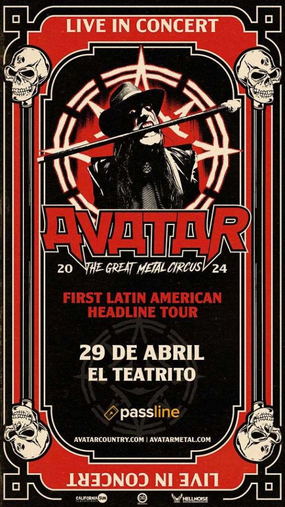 La banda sueca Avatar, conocida por su música y su impactante propuesta estética, se presentará por primera vez en Argentina en el marco de su tour “The Great Metal Circus”.