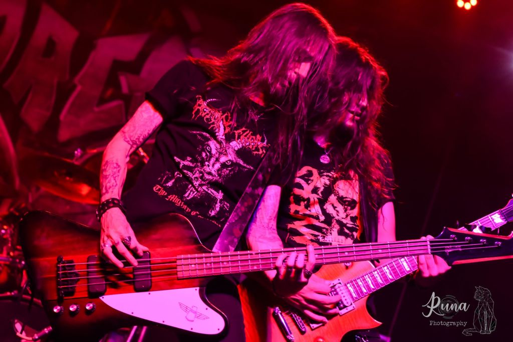 A las 21:45 hs salieron al escenario confirmando su gran presente, el comienzo fue con el clásico «Bajo la Cruz « y «Presa Facil» como para entrar en calor de a poco, el recinto en ese lapso de la noche ya se encontraba colmado y seguían entrando cada vez más gente, entre los clásicos de la agrupación también podemos citar «Cadenas de la Perversión», pero no todo fueron temas clásicos, también hubo lugar para mechar temas nuevos de su último trabajo discográfico llamado «La Magia del Caos» que fué presentado exitosamente a fines de 2023 en El Teatro Vorterix, como siempre Lucas Gerardo en la voz y Emiliano Obregón en guitarra se llevaron todas las miradas de los espectadores que sintieron como ambos y los demás integrantes de la banda se emocionaban ante cada nota vertida al público. También hubo tiempo para un cover, «Cautivos de un Sistema» de V8 para el delirio de los espectadores, y cerraron con el infaltable «Vida Eterna» en el que el público también ofició de coro hasta el final. A las 22:45 hs cerraron su participación.