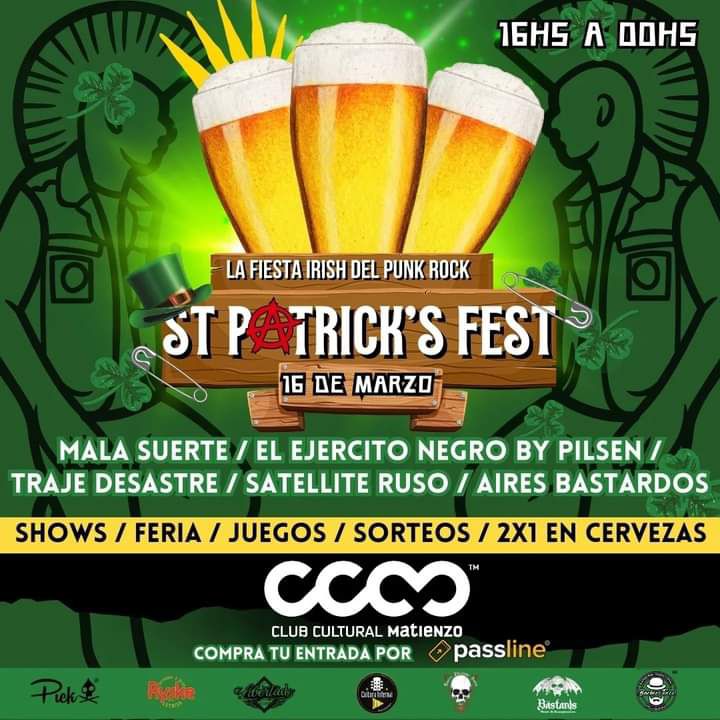 El pasado sábado 16 de marzo se celebró el «St Patrick Fest» argentino. Evento realizado en el Centro Cultural Matienzo cuyo espacio se pintó de verde Irish con un postgusto al paladar bien argentino. Esto transcurrió en Avenida Juan B. Justo 2959 C.A.B.A.