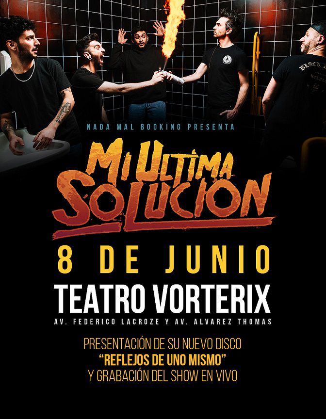 Mi Última Solución la banda más representativa de la escena post-hardcore nacional se presentará por primera vez en el mítico Teatro Vorterix para dar un show histórico en su carrera, en el cual presentarán oficialmente su tercer álbum de estudio «Reflejos de uno mismo» y se convertirá en su primer disco grabado en vivo.