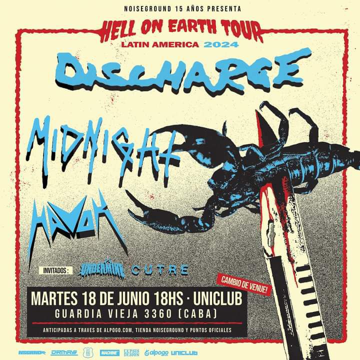 Organizar recitales en un país como Argentina es como apostar a las cartas constantemente; uno puede contar con una estrategia, pero en definitiva está ligado al azar. En teoría, una gira con Dicharge, Midnight y Havok (Sumado a los locales de Cutre y Undermine) debería funcionar sin problemas. Y mas cuando estamos hablando de precios económicos (Tres bandas internacionales al precio de una). Pero la lógica no siempre aplica y el show, originalmente pensado en Groove se trasladó a Uniclub por poca venta de entradas. Es cierto, quizás el local de Groove era un tanto ambicioso, pero también es cierto que nadie puede predecir que pasara con las convocatorias últimamente. Lo cierto es que la productora Noiseground, en vez de cancelar el show, decidió trasladarlo a un lugar mas íntimo, donde se beneficiaron tanto el público como los grupos.