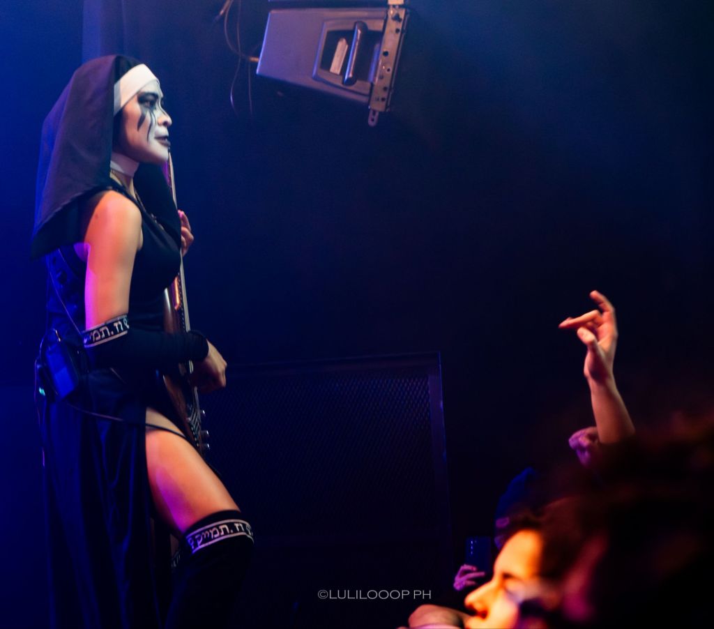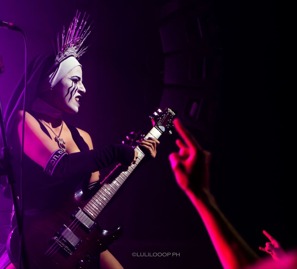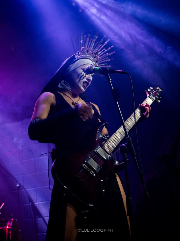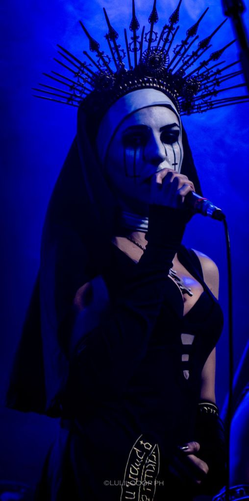 Pasados veinte minutos de las ocho, bajo una introducción pongamosle «Celestial», y las luces tenues, aparecieron ellas con atuendos de monjas y sus rostros pintados con lágrimas negras. El estallido del público fué total. Ellas nos vinieron a deleitar con su primer trabajo discográfico que lleva el mismo nombre que la banda. Desde el vamos la energía que desplegaron en el escenario fué total, dientes apretados, guitarra y bajo en mano, te hacían pensar que estaban dispuestas a ir a una guerra. También quiero destacar sus facetas teatrales y sensuales de ellas que cautivaron a los presentes y se ganaron el corazón de todos. Cada riff liberado al público, tuvo un gran impacto en la monada que enloquecida saltaron y se atrevieron a entonar, cánticos de cancha con el nombre de la banda como ser «ohhh soy de Dogma…». Y para que la fiesta fuese completa en su totalidad, hicieron un popurri instrumental donde incluyeron «Walk», «The Trooper», «Master of Puppets», «Simphony of Destruction» entre otros. Ahí sí se puede decir que la gente enloqueció en su totalidad y se empujaron unos a otros felices y contentos. El final del show llegó de la mano de «Father I Have Sinned» pasados cinco minutos de las nueve de la noche.