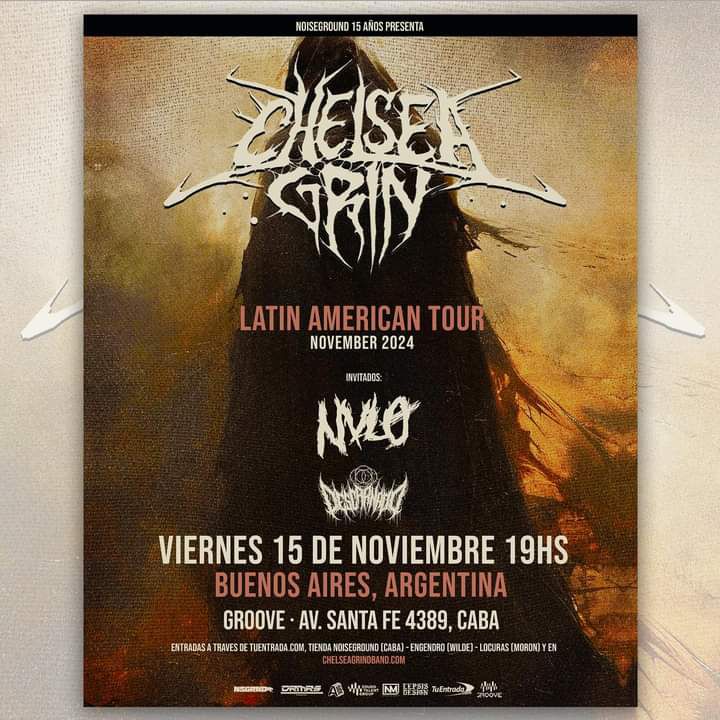 El pasado 15 de noviembre fue la presentación de la banda norteamericana Chelsea Grin en el marco de su gira latinoamericana, en donde se presentaron en el mítico Groove dando un show enérgico y descomunal. Las bandas Descarnado y Nvlo fueron las invitadas. Las puertas fueron abiertas a las 19 hs.