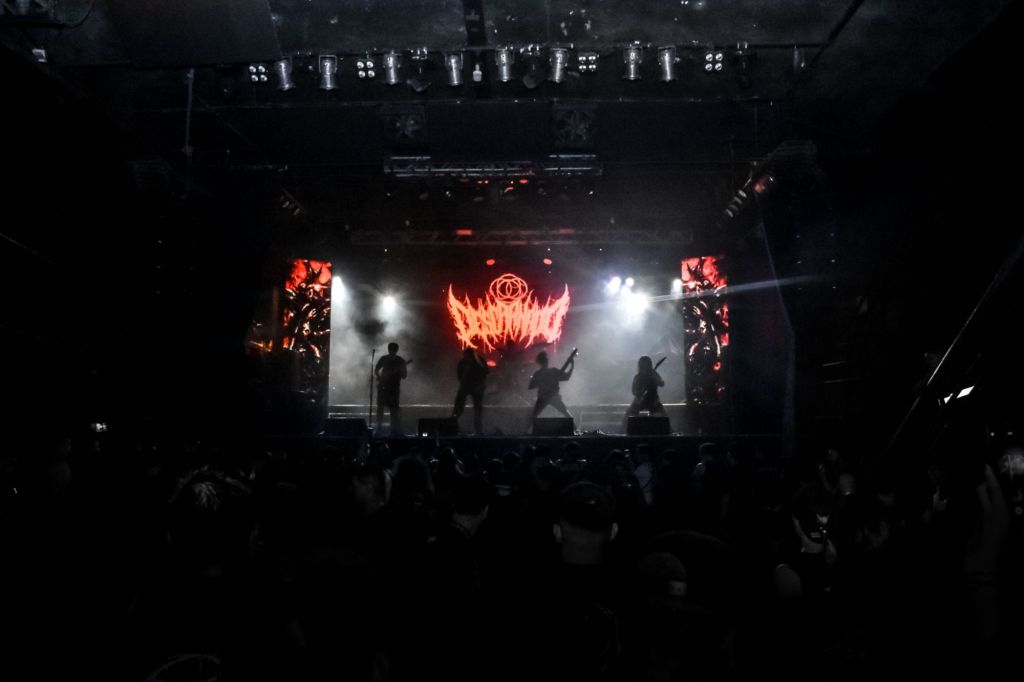 A las 20:35 se abre el telón y arranca Nvlo. Sembrando el descontrol, dan inicio a su show con «Bastardos en pena» agregando algunas vueltas a mitad de la canción, donde aprovechan para interactuar con el público, dando inicio a una ronda de pogo sin fin. Mientras la gente se desplazaba con golpes y patadas voladoras, Nvlo prendía fuego el escenario con sus voces imponentes y sus característicos breakdowns, dándonos un tour por sus 3 últimos discos en un setlist rápido de 8 canciones. Con el público extasiado y en su nivel más alto de adrenalina en lo que iba de noche, dan fin a su show con Desdén.