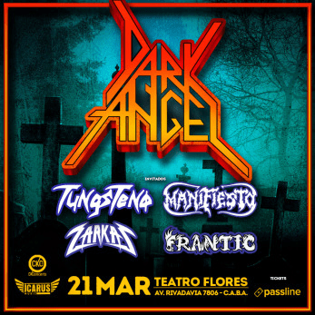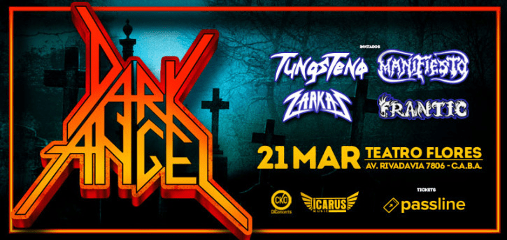 Por primera vez en Argentina, la icónica banda de Thrash Metal, Dark Angel, ofrecerá un show inolvidable. El concierto se llevará a cabo el próximo 21 de marzo de 2025 en el Teatro Flores, ubicado en Avenida Rivadavia 7806, Ciudad Autónoma de Buenos Aires. La velada contará con la participación de cuatro bandas invitadas que darán inicio al espectáculo: Tungsteno, Manifiesto, Zarkas y Frantic.