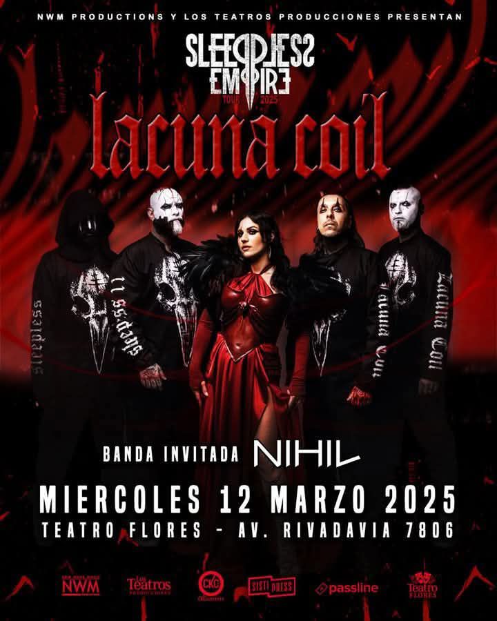 La icónica banda italiana Lacuna Coil regresó a Buenos Aires luego de cinco años, reafirmando su fuerte conexión con el público argentino. En esta ocasión, la agrupación llegó para presentar su más reciente álbum, «Sleepless Empire», lanzado en febrero de este año. Como banda invitada, el evento contó con la presencia de Nihil, una propuesta local en ascenso. Las puertas del Teatro de Flores se abrieron a las 19:20 hs.