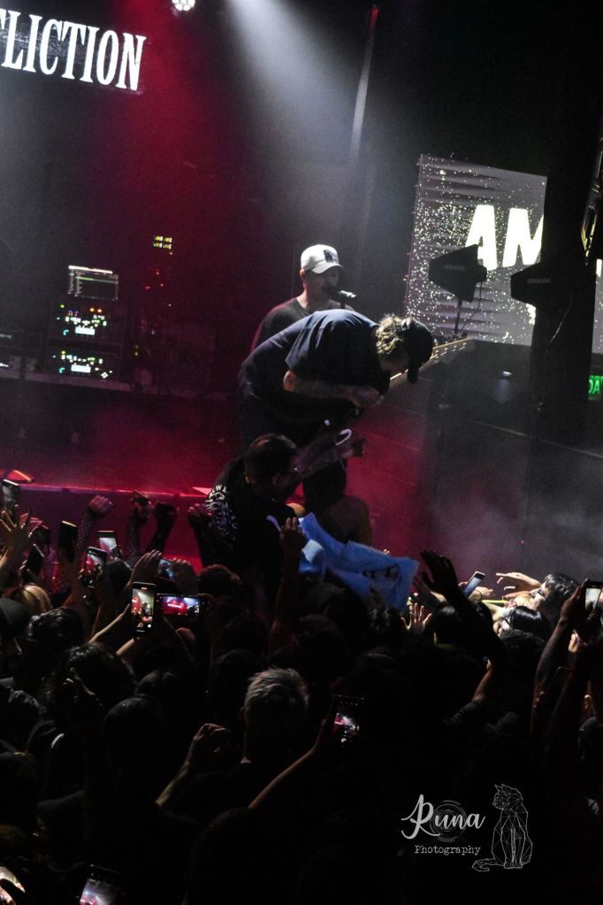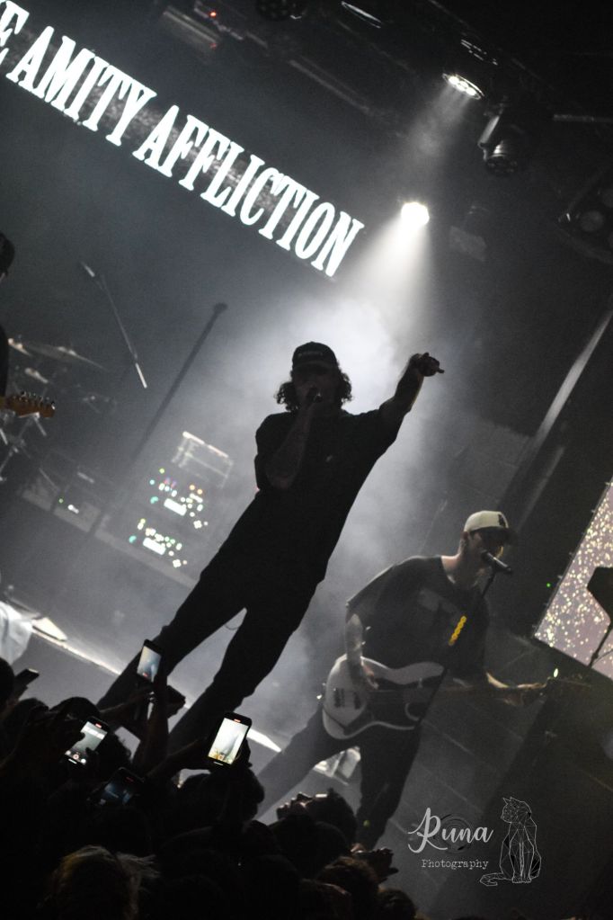 A las 21 hs, los primeros acordes de The Amity Affliction sacudieron el recinto. Las luces tenues, el humo y la aparición de Joel Birch (vocalista) elevaron la temperatura del lugar. Los fans, con gritos y puños en alto, se entregaron desde el primer minuto. La presentación se destacó por su altísima intensidad: el público no solo cantó cada tema, sino que subió al escenario para lanzarse en stage diving, generando un mar de cuerpos en movimiento.