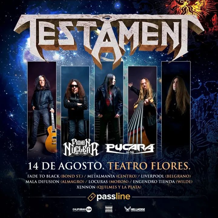 Testament, una de las bandas más emblemáticas del thrash metal mundial, regresa a Argentina en el marco de su esperada gira “Latin American Tour 2025”. La cita será el jueves 14 de agosto en El Teatro Flores, uno de los venues más representativos del metal en Buenos Aires. Las bandas invitadas serán Fisión Nuclear y Pucará IA 58.