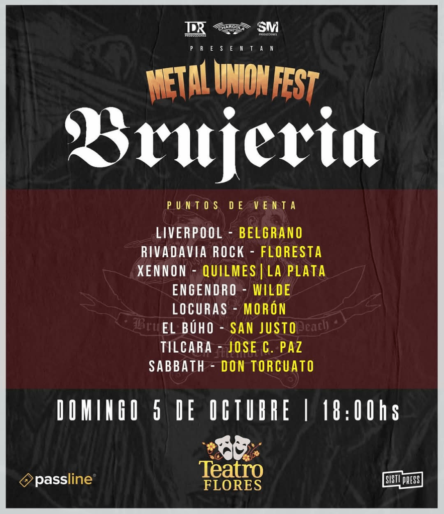La emblemática banda mexicana Brujería regresará a Buenos Aires para un concierto exclusivo el domingo 5 de octubre de 2025. Esta cita será, en esa fecha, en el Teatro Flores, en Avenida Rivadavia al 7806 en Capital Federal. Este show se enmarca dentro del Metal Unión Fest, una celebración que reúne lo mejor del Metal latinoamericano. La agrupación rendirá homenaje a Juan Brujo y Pinche Peach, miembros icónicos que dejaron una huella indeleble en la escena. Su combinación de Grindcore y Death Metal promete una experiencia intensa para todos los seguidores del género.