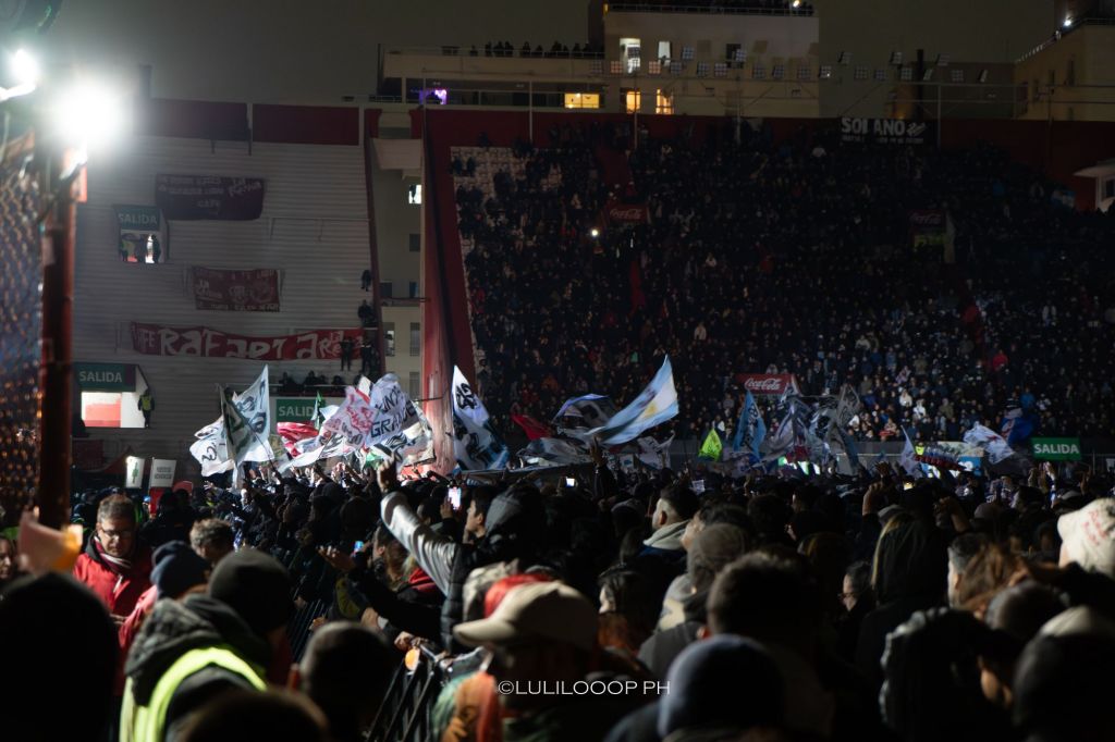 El “banquete”, como se suele llamar a sus recitales, es mucho más que un simple show: es un ritual popular, una celebración masiva que comienza desde temprano en las calles y culmina con los corazones vibrando al ritmo del rock. Desde las primeras horas del sábado, los alrededores del estadio estaban colmados de fans. Grupos de personas, banderas y los clásicos puestos improvisados de comida transformaron el barrio de Parque Patricios en una fiesta callejera.