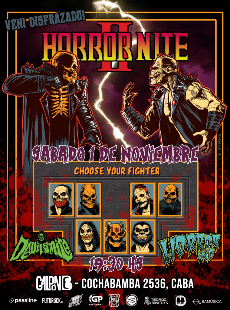 El sábado 1 de noviembre, desde las 19:30, el Galpón B (Cochabamba 2536, barrio de San Cristóbal) de la Ciudad de Buenos Aires recibirá la segunda edición de HORRORNITE, un encuentro temático que combina música, estética macabra y espíritu de Halloween. La velada estará protagonizada por dos proyectos argentinos: Devilsnite y Horror Inc, que darán vida a una noche de disfraces, terror y guitarras distorsionadas.