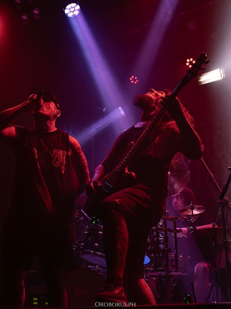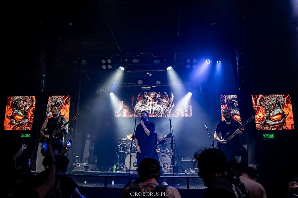Las visuales apocalípticas acompañaron la atmósfera del show, mientras la banda entregaba una performance sin fisuras. En un momento, uno de los guitarristas bajó del escenario, se ubicó al fondo del local y, con riffs poderosos, generó que el público —dividido en dos— se uniera en un circle pit alocado.