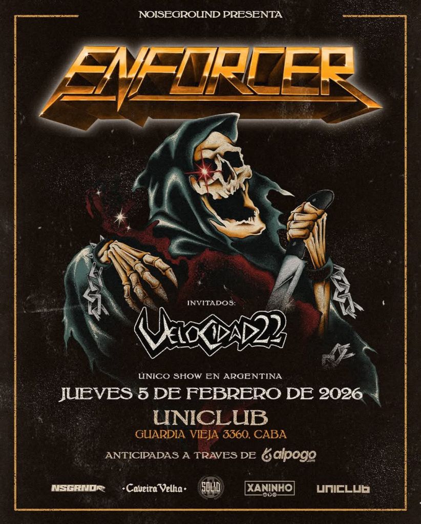 La potencia del heavy speed metal europeo aterriza en Argentina de la mano de Enforcer, referentes del movimiento New Wave of Traditional Heavy Metal (NWOTHM). La banda sueca ofrecerá un show cargado de energía y espíritu ochentoso el 5 de febrero en Uniclub, mientras que el 4 de febrero se presentará en Sala Formosa, Córdoba. Como invitada especial en Buenos Aires estará la agrupación local Velocidad 22.