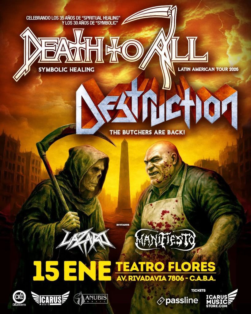 El Teatro Flores fue el epicentro de una verdadera celebración del metal extremo con las presentaciones de Death To All y Destruction, en una fecha que combinó precisión técnica, homenaje y violencia sonora en partes iguales.