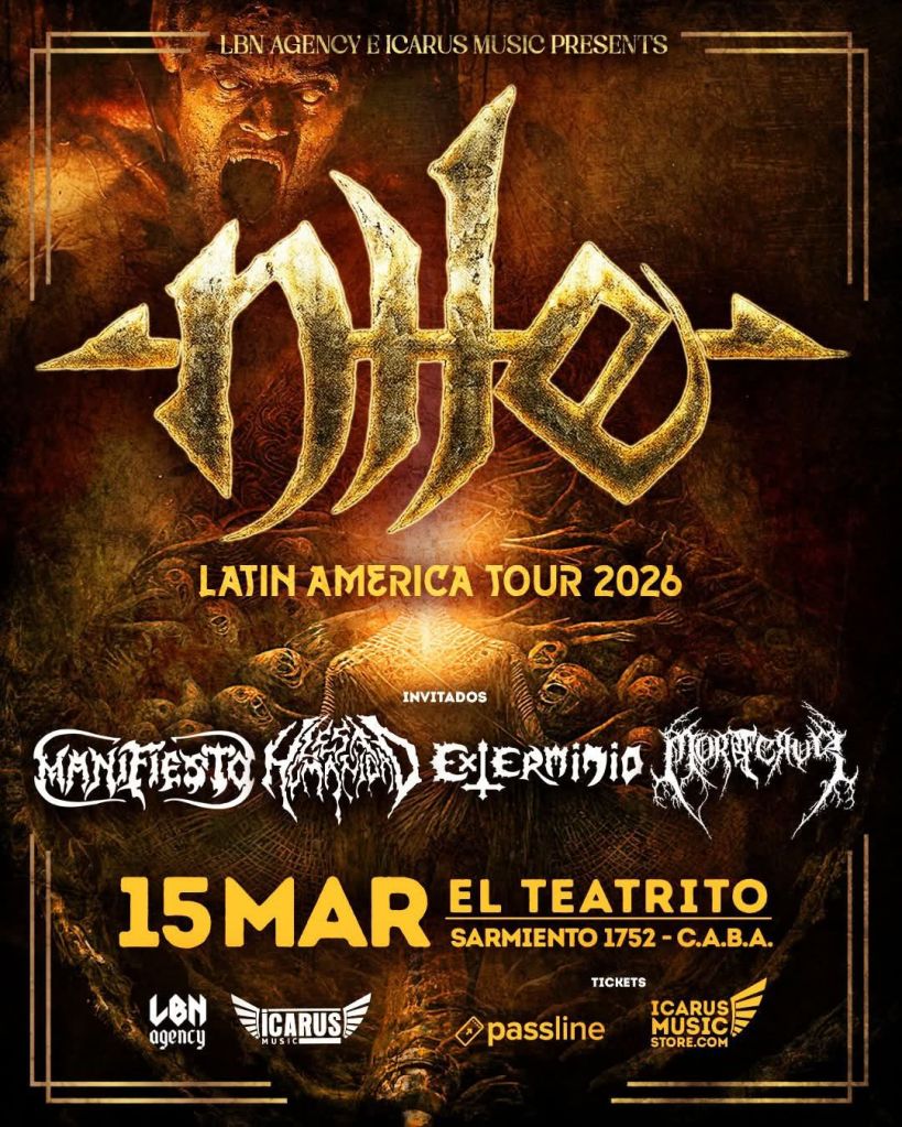 Tras su última visita a la Argentina en 2023, Nile vuelve a escena con toda su potencia intacta y un legado musical profundamente arraigado en la mitología egipcia y la historia antigua. La banda estadounidense reafirma su lugar como una de las propuestas más extremas, técnicas y conceptuales del death metal a nivel mundial.
