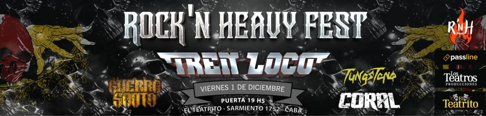 El próximo viernes 1 de diciembre se llevará a cabo dicho evento en el cual se presentarán Tren Loco, junto a Guerra Santa, Coral y Tungsteno, esto acontecerá en El Teatrito Sarmiento 1752 C.A.B.A. a partir de las 19:00 hs. Brindando una apertura de altísimo nivel, la destacada banda venezolana Guerra Santa, radicada ya haceSigue leyendo «ROCK’N HEAVY FEST’: EL GRAN EVENTO DE METAL CERRARA EL AÑO EN CAPITAL FEDERAL «